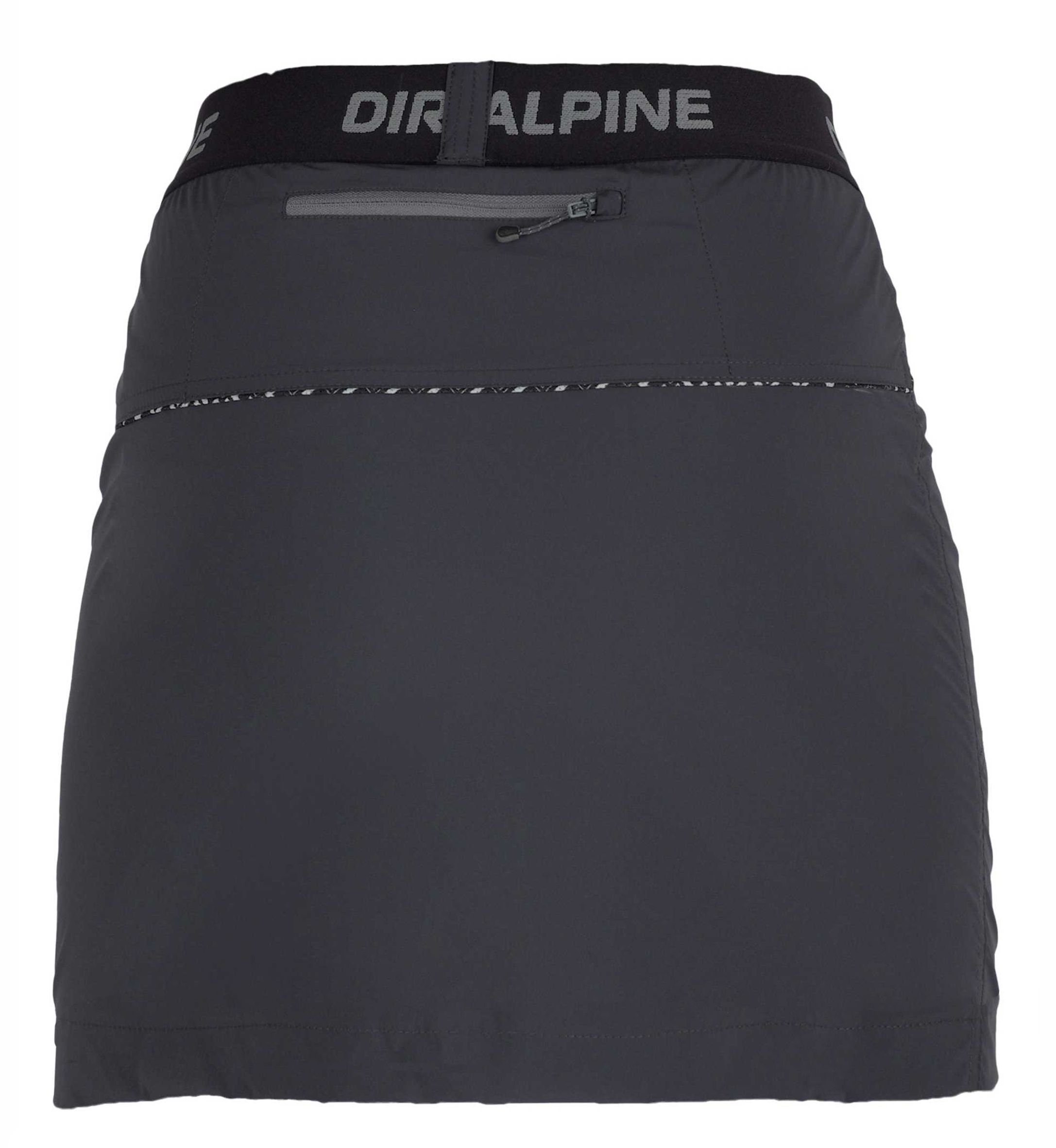 Der ALBA Lady hat einen bequemen, breiten Gummibund mit Direct Alpine-Logo, der für einen perfekten Sitz sorgt, ohne in der Taille unangenehm zu drücken. Der Rock verfügt über zwei geräumige Eingrifftaschen mit dekorativen Paspeln zur Aufbewahrung von wichtigen Utensilien. Auf der Rückseite befindet sich eine Reißverschlusstasche für kleine Wertsachen. Die Ziernähte verleihen dem Rock Eleganz und unterstreichen sein modernes Design