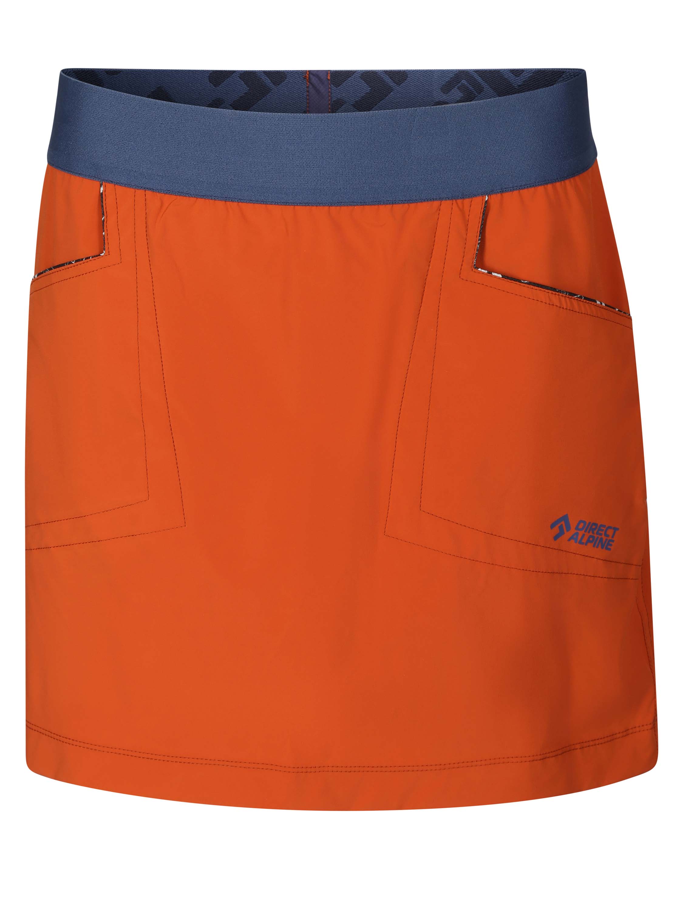 Der ALBA Lady hat einen bequemen, breiten Gummibund mit Direct Alpine-Logo, der für einen perfekten Sitz sorgt, ohne in der Taille unangenehm zu drücken. Der Rock verfügt über zwei geräumige Eingrifftaschen mit dekorativen Paspeln zur Aufbewahrung von wichtigen Utensilien. Auf der Rückseite befindet sich eine Reißverschlusstasche für kleine Wertsachen. Die Ziernähte verleihen dem Rock Eleganz und unterstreichen sein modernes Design