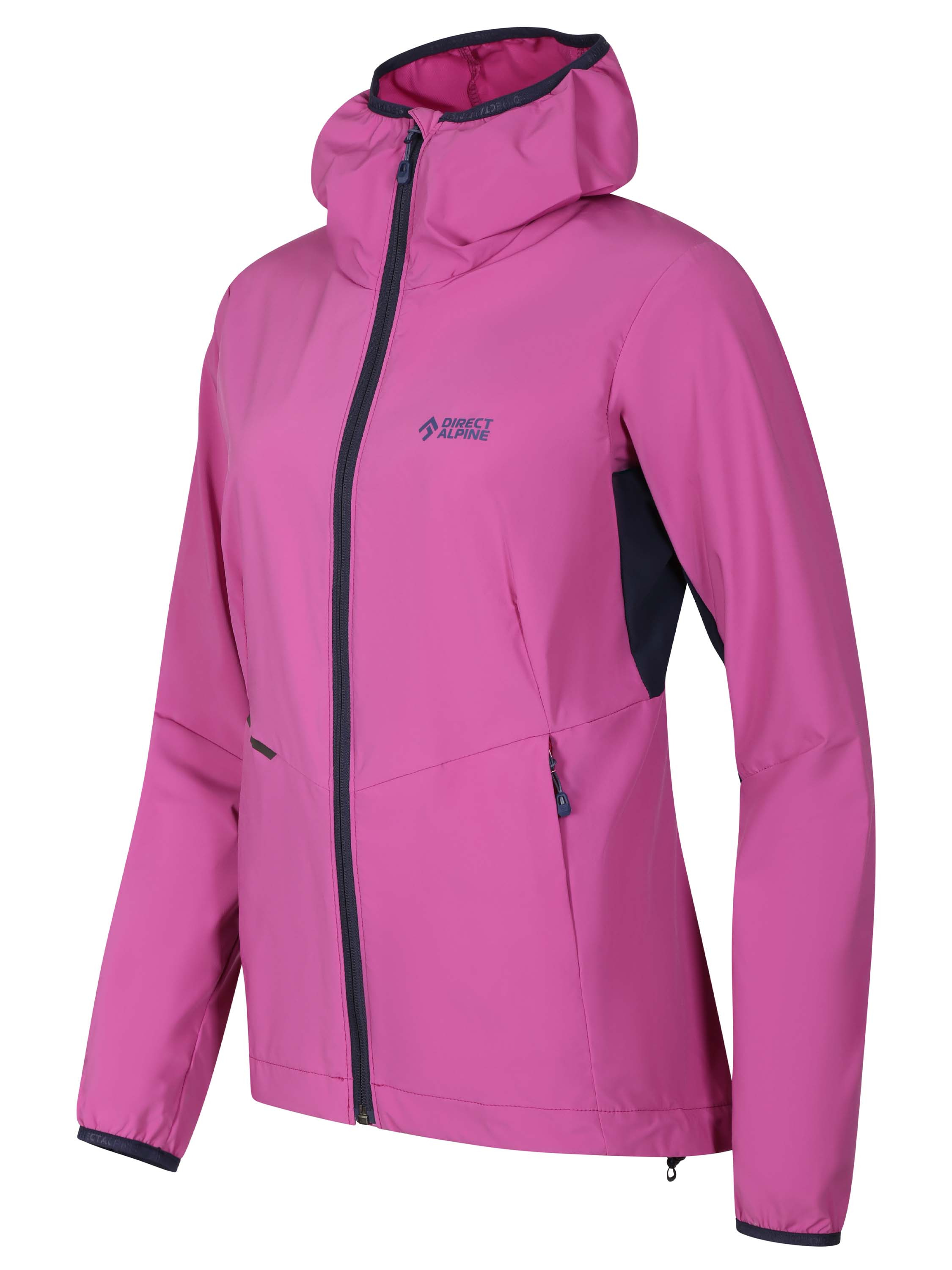 Der anatomische Schnitt, der verlängerte Rücken und der Einhand-Kordelzug an der Unterkante erlauben jede Bewegung beim Klettern, Bergsteigen oder Wandern. Die Jacke hat zwei Vordertaschen mit Reißverschluss für Ihre wichtigsten Utensilien. Farbige, reflektierende Elemente sorgen für bessere Sichtbarkeit und Sicherheit unterwegs. Die Kapuze ist auch für Frauen geeignet, die einen Zopf tragen.