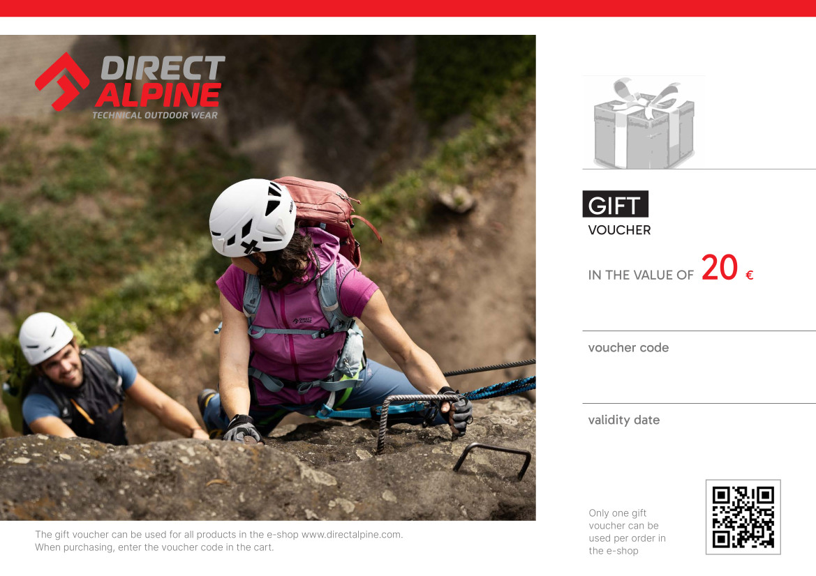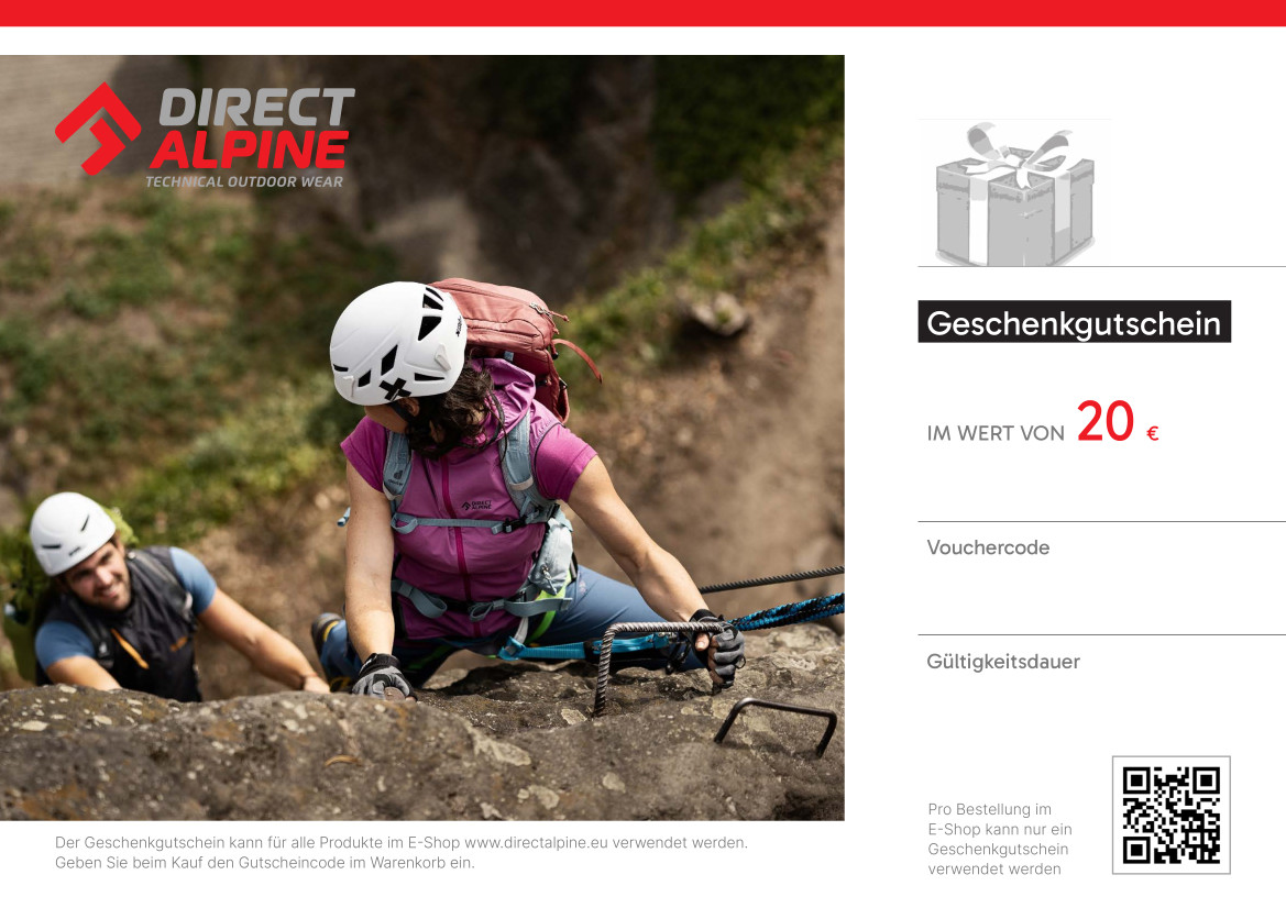 Sie sind sich bei der Wahl Ihrer Kleidung, Ihrer Lieblingsfarbe oder -größe nicht sicher? Möchten Sie Ihren Lieben oder Freunden eine Freude machen, indem Sie ein Original-Funktionskleidungsstück von Direct Alpine kaufen? Wählen Sie einen Gutschein über den gewählten Betrag aus und überlassen Sie die Auswahl dem Beschenkten...