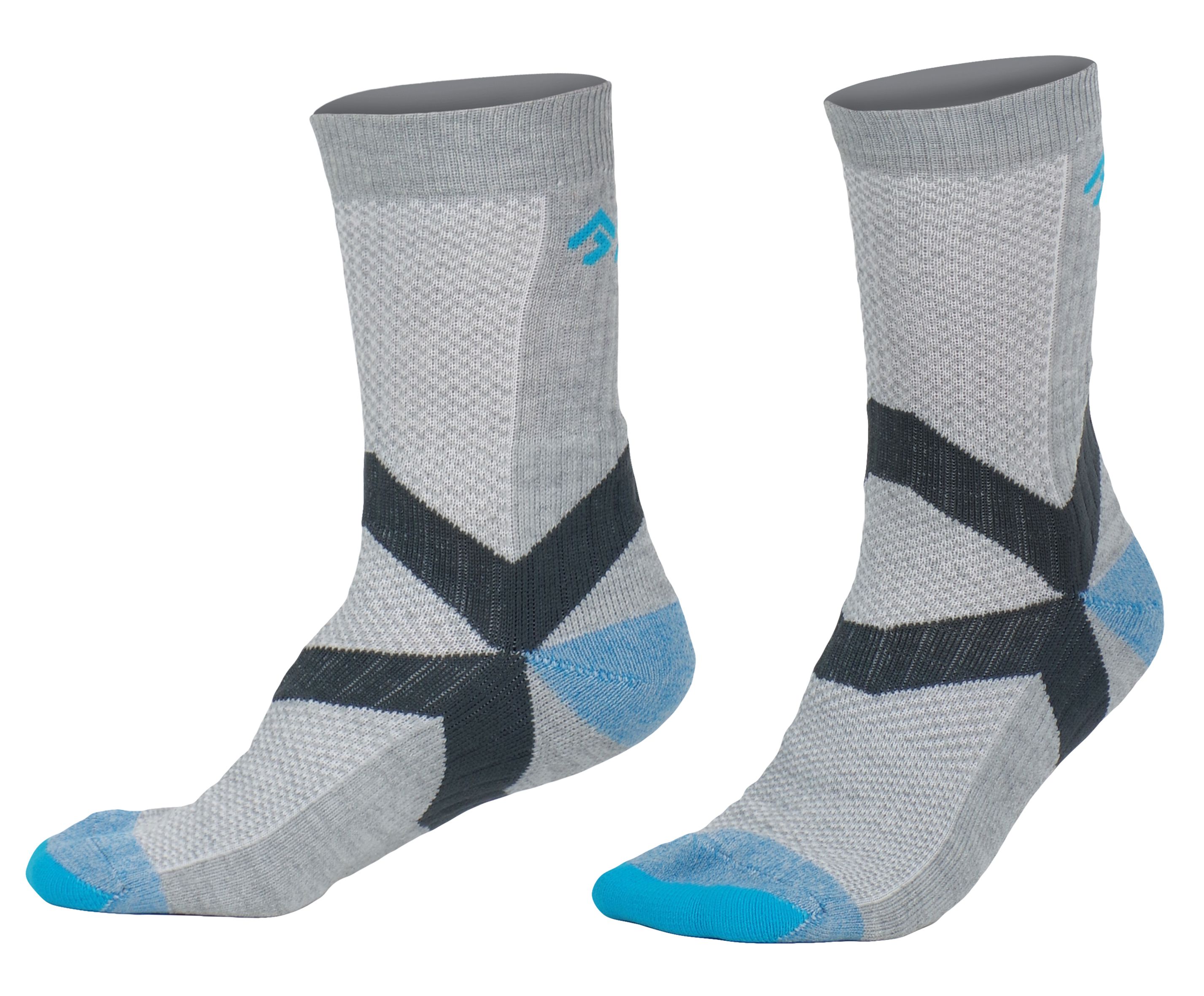 Mitteldicke Sportsocken für das ganze Jahr und eine Vielzahl von Aktivitäten. Die Socken sind mit einer einzigartigen Verstärkung im Knöchelbereich ausgestattet, die ein Verdrehen und Verrutschen der Socke verhindert. Die Funktionalität wird durch den Anteil an Coolmax-Faser zur Schweißableitung und die Verstärkungen im Bereich der Ferse und Zehen erhöht, die Druckstellen verhindern.